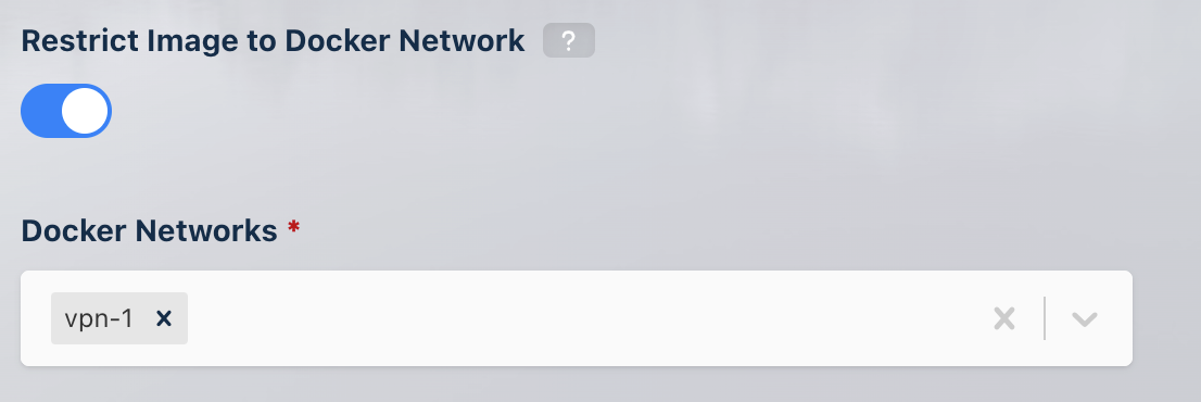}Finally, make sure the Restrict Image To Docker Network and select the VPN connection we created earlier.